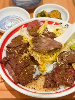 The diaphragm is tender and juicy, and the shop's secret sauce is served with melted hot spring egg bibimbap. The best part is that the rice bowl set can be renewed for free with small dishes, soup and rice.