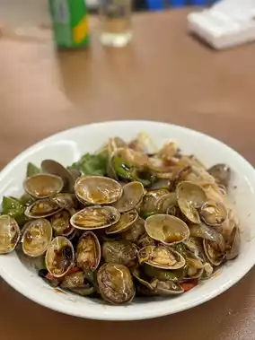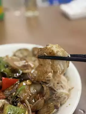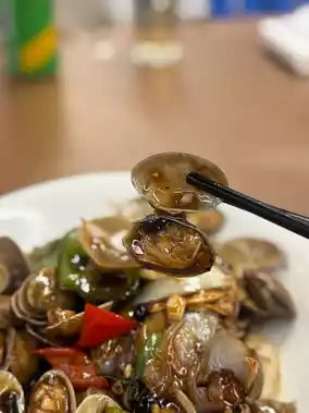 Stir-fried Clams with Rice Vermicelli: The stir-frying of fermented black beans unleashes their unique fermented bean aroma and salty flavor. This savory flavor is not overly salty, but rather rich and profound. The clams are plump and tender, with a refreshingly sweet, seawater-like umami flavor that cannot be replaced by any other seasoning. The clams' sweetness perfectly balances the saltiness of the fermented black beans and absorbs the aroma of the black bean peppers. Each piece is plump and full of flavor.