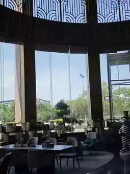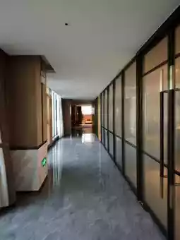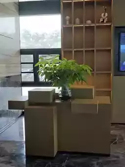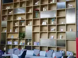 The public spaces are equally impressive, adorned with geometric decorations, walls filled with artistic shelves, and complemented by greenery and books. Here, art meets the vibrancy of life. Floor-to-ceiling windows invite the lush greenery and blue skies indoors, offering a serene spot to relax. Whether you choose to enjoy a quiet moment reading or gaze at the cityscape, this space allows you to shed your fatigue and embrace a tranquil experience.