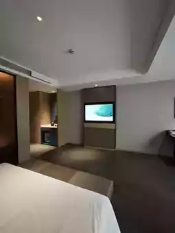 The hotel rooms are designed with simplicity and sophistication, featuring wooden elements and soft lighting that create a warm and cozy ambiance. Every detail exudes quality and refinement.
