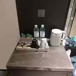 The rooms are clean and tidy, offering complimentary amenities such as four bottles of water, coffee, and tea. The bedding is very comfortable, and the room lighting creates a cozy atmosphere, ensuring a good night's sleep. This time, I booked a room with two 1.35-meter beds. The room is equipped with a smart voice assistant, 'Xiao Mai,' which can control music, curtains, and lighting. The soundproofing between rooms is also commendable.
