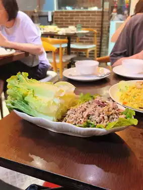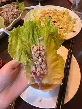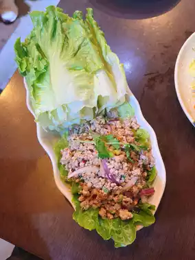 The Minced Meat Lettuce Wrap 🥬 is made with minced meat stir-fried with herbs 🌿, chili 🌶️, and onions 🧅, delivering a flavorful punch 🤤.