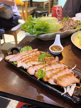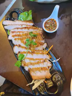 The Grilled Pork Neck 🐖 is grilled to a slightly charred and crispy perfection 🔥, with a tender and fatty aroma 😛.