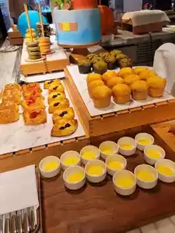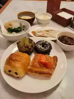 The breakfast buffet is served at The cafe with a wide selection. La Cha-fun, Tang Ka Wan tea and fruit, ready-to-eat beef/pork dumplings 🐄🐖, sour plum soup, tofu pudding, etc. are all delicious, all kinds of small desserts are exquisite and delicious, and you can take a cup of coffee to drink slowly ☕️