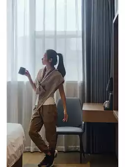 The room is super spacious, with a modern minimalist design that’s both upscale and comfortable. Both beds are extra wide, perfect for staying with your bestie or family without feeling cramped~ The bedding is so soft you won’t want to get up, plus city-themed decorations add a great touch of detail!