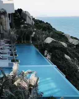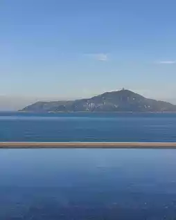 • Mountain and Sea Views: The infinity pool merges with the sky and sea, looking like a movie scene at dusk.