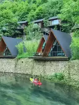 Approaching the hotel, you find it is surrounded by streams, with very clear water, and you can start playing in the water as soon as you step down the stone beach. You can see guests playing kayaking here.