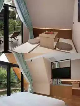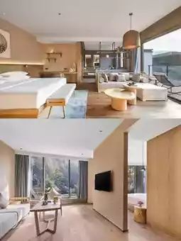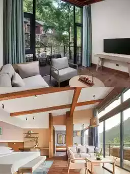 Special wooden houses, tree houses, starry sky houses, flowing water villas, mountain view villas, etc. are scattered in the woods along the stream. Special room types that emerged in the mountains and waters
