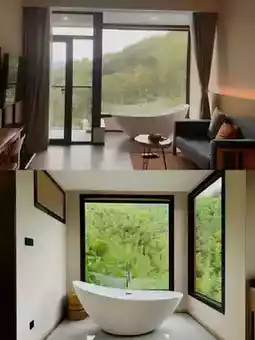 Fun and photogenic 📷Enjoy afternoon tea by the pool, relaxed and happy! You can also fish in the small pond next to it and enjoy the fun of fishing. There is a book bar, tea bar, KTV in the lobby, and a billiard room, chess and card room, indoor VR golf 🏌🏻♀️court downstairs to meet the needs of leisure and entertainment. When you are tired of playing, you can soak in the mountain view hot springs and have a sweat steam to relax your body and mind.