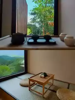 The oversized floor-to-ceiling windows provide excellent lighting, and are equipped with a large terrace and tatami. The original wood furniture in the room is matched with retro lighting 🛋️, which is warm and comfortable. The customized cotton and linen bedding 🛏️ will help you have a good night's sleep. There are also high-quality facilities such as central air-conditioning, floor heating throughout the house, smart voice home, Nespresso capsule coffee machine ☕, as well as selected accessories such as imported bathroom and Dyson hair dryer.