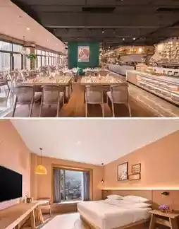 The hotel's Wild Stove Restaurant can accommodate 120 people and serves Chinese cuisine. The restaurant has a children's dining area. The hotel uses fresh ingredients from its own farm to prepare local dishes.