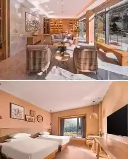 The hotel has 147 rooms and villas, each with a view of the surrounding scenery. The hotel has many fairytale-themed rooms, including a treehouse on the mountainside, a treehouse inspired by the Kayumanis Resort, a fisherman's house on the river, and a stargazing room. The rooms are equipped with custom mattresses and electric curtains.