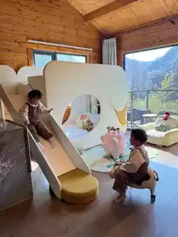 ⛰️ The Fragrant Grassland series is a family-friendly resort brand under Kaiyuan, and it really lives up to its reputation. The Zhuji Fragrant Grassland Resort Hotel has treehouses 🌲 and waterside fishing huts 🐟 that kids will love, as well as camp tents 🏕️ that are ready to move into. You can choose a themed room based on your family's preferences. I have two kids, so I chose the pet-themed family room, which is perfect for families with multiple kids. The wide range of facilities and activities made our family trip even more fun.