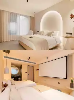 🏘【B&B introduction】The B&B is located next to the beautiful Zhujiajian Guanyin Dharma Realm. The decoration style is modern cream micro-cement, the sanitary conditions are excellent, the smart home is fully equipped, the service is thoughtful and patient, and there is a sense of returning to your own home!