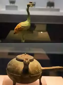 ▪️Secondly, you can also look at the bronze dung and bronze tripod from the Spring and Autumn Period, the jade bi and multi-god halberd from the Warring States Period, the tortoise-crane bronze lamp from the Han Dynasty, the Bagua double-phoenix mirror and twisted glaze porcelain pillow from the Tang Dynasty, the Jun porcelain plate from the Song Dynasty, the three-color cloud dragon bottle from the Qing Dynasty, etc.