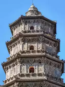 The twin towers are both Liao Dynasty pavilion-style octagonal imitation wood brick towers. The north and south towers are 260 meters apart and are collectively called the Twin Towers. The south pagoda is named Zhidu Temple Pagoda, built in the eleventh year of Taiping in Liao Dynasty (1031), with five levels and 44 meters high; the north pagoda is the Yunju Temple Pagoda, built in the sixth year of Chongxi in Liao Dynasty (1037), with six levels, 56 meters high. The Zhuozhou Twin Towers were announced by the State Council as the fifth batch of national key cultural relics protection units on June 25, 2006.