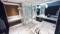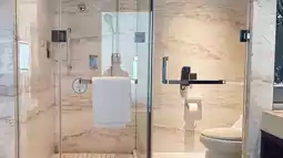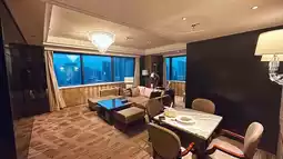 The hotel has six room types for guests to choose from. The room design is stylish, and the luxury king-size room starts at 46 square meters. The presidential suite is 277 square meters and the rooms are decorated with marble and gorgeous crystal chandeliers 😍. The rooms are spacious with a wide view of the Shenlong Tower. The facilities are complete and the rooms have a bit of American style. Guests will also receive welcome fruit upon check-in.