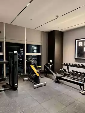 The rooftop offers a gym 🏋️♀️, and right next to it is a laundry room with a dryer 👔, which can be used for free 🆓🆗.
