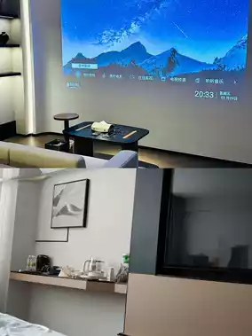 There are many types of rooms, such as rooms with bathtubs, king-size beds, and audio-visual rooms. This time, I stayed in an audio-visual room. Lying on the sofa, watching the projector, and eating takeout is simply too enjoyable. The projection effect is very good and high-definition.