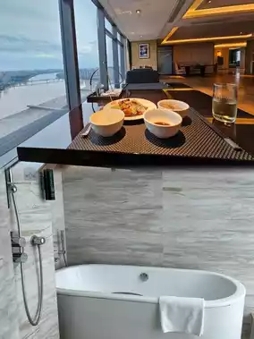 • Wide views: The hotel's rooms and public areas have wide views, overlooking the Xiangjiang River and the city skyline of Zhuzhou.