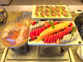 The fruits are exquisitely cut, including strawberries and blueberries. The desserts have also been updated compared to afternoon tea, and the products can be said to be quite good.