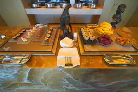 The hot dishes of the day include garlic spare ribs, salt-grilled saury, spring-like snow vegetable and bamboo shoots, spicy fried seafood, etc. There is also smoked salmon on the Western cold cuts, in addition to freshly baked pizza and a variety of sushi.