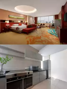 Zibo Yinzuo Huameida Hotel has a total of 212 rooms (sets), including superior rooms, deluxe rooms, business suites, and deluxe suites. The area of each room is more than 40 square meters. All rooms in the hotel are modern and stylish, with a specially designed non-smoking floor. The apartment rooms with high-end kitchen equipment and deluxe apartment suites are the new favorites of long-stay guests. The luxurious room facilities and pleasant shower experience meet your high-quality needs. The hotel also has several meeting rooms with complete facilities ranging from 35 square meters to 420 square meters, with the cooperation of senior meeting experts. The meeting halls each have their own style, with a quiet and comfortable environment. The full-time Chinese and Western buffet restaurant has a modern design style, natural lighting, and an elegant environment. It integrates Chinese food, Western food, barbecue, and Japanese and Korean cuisine into one, striving to create a food carnival gathering place for guests, allowing you to experience the storm on the tip of your tongue.