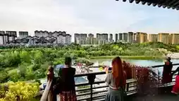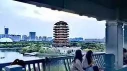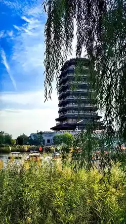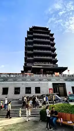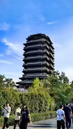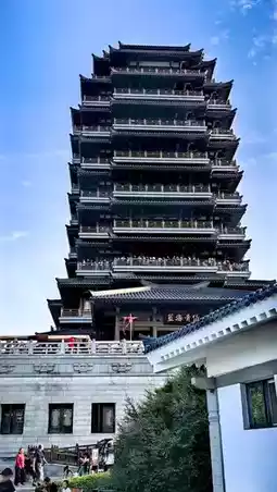 Haidai Tower is located at the highest point of Zibo Qisheng Lake Park. It adopts the architectural style of the Han Dynasty and has a total of ten floors, nine above ground and one underground. The total construction area is 11,642 square meters, and the total height is 67 meters. The architectural style of Haidai Tower is unique, with an exterior that presents the style of the Ming and Qing Dynasties, featuring carved window lattices and flying eaves with brackets. Inside the tower, there are seventy-two rooms, each with unique decorations and designs, showcasing the charm and style of ancient architecture.