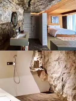 The architectural design of the Qingchuan section of the Qi Great Wall is also excellent in its attention to detail. Each guest room is unique, with different layouts and areas. This design not only increases the diversity of the rooms, but also allows every guest to find their own unique space. The cave rooms are decorated in simple tones, and the off-white color creates a soft and warm atmosphere, while eliminating the original depressing feeling of the cave. The undulating curves and small caves in the room are a clever response to the "cave imagery", making the entire guest room look more like a warm treasure house encountered on a journey to the center of the earth.