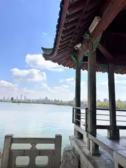 The lake is dotted with boats, carrying visitors leisurely admiring the scenery or capturing memories with laughter and smiles. I boarded a small boat, and with the rhythmic strokes of the oars, we glided towards the center of the lake. The boat cut through the water, creating ripples that spread outward, evoking a sense of drifting along the river of time, far from the hustle and bustle of the world.