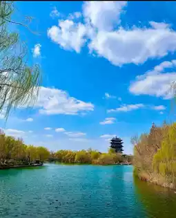 Strolling along the lakeshore, I'm surrounded by weeping willows, their slender branches dipping into the water, swaying gently in the breeze, as if whispering to the lake. In the flowerbeds along the bank, colorful blossoms compete for attention, red like fire, pink like clouds, and white like snow. The rich fragrance attracts countless bees and butterflies, busily flitting among the flowers, adding a touch of vitality and vibrancy to the tranquil Daming Lake.