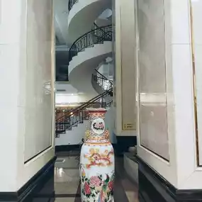 As many as five Victorian style chandeliers, and a classic spiral staircase, gives it a sense of luxury and style.