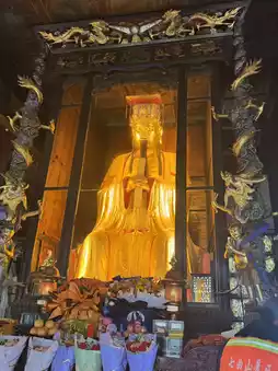 The Guixiang Hall is named after the ancient osmanthus tree planted in front of the hall. During flowering season, the fragrance fills the courtyard, wafting on the wind and blending with the lingering Buddhist incense within the hall, creating a uniquely elegant atmosphere. Inside the hall, the statue of the Bodhisattva, with its benevolent and auspicious features, complements the sweet fragrance of the osmanthus, creating a tranquil and peaceful atmosphere.