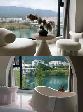 It is located by the Xiao Dongjiang River. When you open the window, the picturesque river view comes into view. The gentle flow of the river instantly heals my soul💖 The surrounding transportation, dining, and shopping are very convenient, so there is no need to worry about travel and living issues🚗