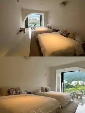 The bedding is so comfortable that it feels like sleeping on a cloud. Once you lie down, the fatigue immediately dissipates. There is also a huge projector in the room, making it so cozy to lie in bed and watch movies with friends at night🎬