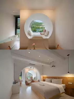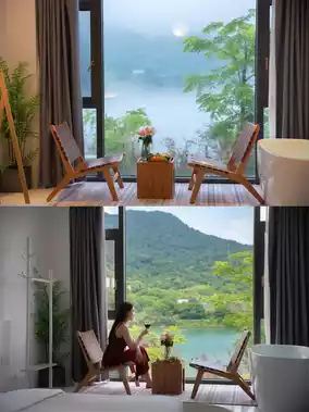 ✅ Key Highlights: The villa is located at the C position on the shore of Dongjiang Bay in the 5A scenic area of Dongjiang Lake, with an excellent geographical location. You can enjoy a panoramic view of the "Mist over Xiao Dongjiang" right from the bed. It features strong design sense, wabi-sabi aesthetics/cave arch style with a high photo rate, perfect for girlfriends, couples, honeymooners, and family trips. The water temperature of Dongjiang Bay at the door ranges from 3℃ to 8℃ in summer, with negative oxygen ions between 49,000m3 and 59,000m3, a natural oxygen bar air conditioner, a perfect place to cool off and breathe fresh air! In the evening, you can also enjoy a romantic night tour of the icy Dongjiang Bay right at the door, extremely pleasant!