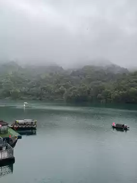 This 5A-level scenic natural site in China is located in Chenzhou City, Hunan Province. Surrounded by lush green forests and mountains, the water is shrouded in mist, creating a tranquil and poetic beauty. Nearby, you'll find Hougu Mountain Waterfall, which cascades down a cliff into the lake.