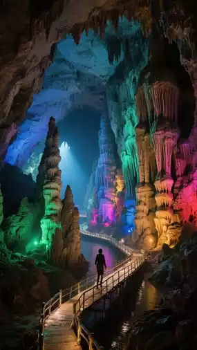 Shaped stalactites: "Sea-Calming Needle," "Dragon King's Throne," "Chang'e Flying to the Moon"
