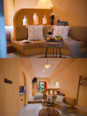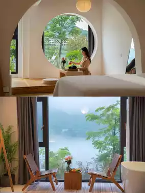 The location is absolutely stunning! Right at the prime spot by Dongjiang Bay, open the window and you get an ink-wash painting-like river view. No need to squeeze onto the viewing platform early in the morning; you can watch the mist drifting over Little Dongjiang right from your bed[__LINK_ICON]. The rooms feature a wabi-sabi style mixed with cave design, every photo looks high-end, equipped with smart home devices and a projector. After a day of fun, cozying up to watch shows is super relaxing. Some rooms even have bathtubs, perfect for soaking away your fatigue.