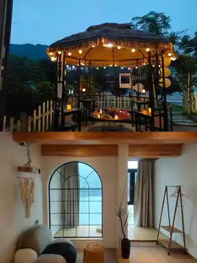 - Location: The villa is perfectly located in the core C position of Dongjiang Lake, a real jackpot. In the evening, you can enjoy a romantic night tour of the icy Dongjiang Bay right outside the villa. The inn is about an 8-minute walk from the Dongjiang Lake Scenic Area Visitor Center, so no need to rush for early buses; it has its own small courtyard, where you can sit on a rattan chair drinking tea by the fire pit, looking up at the stars.