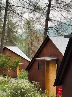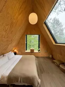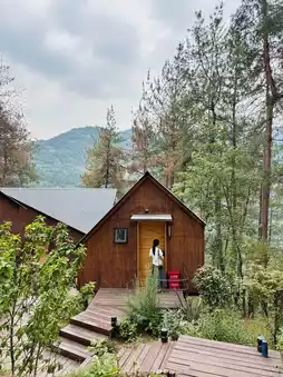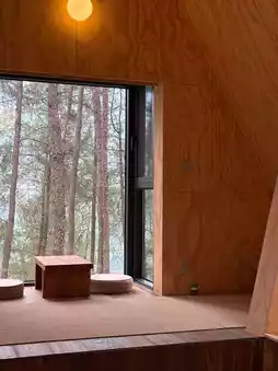 Cabins: Create a forest sanctuary returning to nature in the mountains, with a window framing a view. Being among the pine forest is an ultimate relaxation.