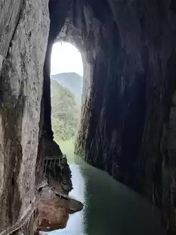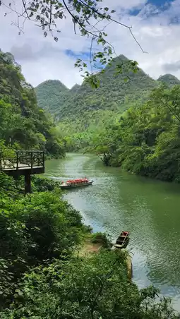 📸 Chuan Shang Cave: Overlooking the panoramic view of Getu River, the beautiful scenery is like a fairyland, a perfect spot for photos! No one can resist the temptation of this scenery.