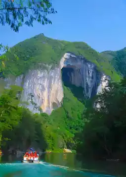 - **Swallow Cave (Big Arch Cave)**: A 116-meter-high natural arch! Glide in by boat as swarms of swallows dart overhead (visible from Qingming to Chongyang Festival). Deep inside, sunlight pours through the "Sky Light Cave"—catch a rainbow if you're lucky! 💦