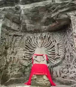 The Cliff Inscriptions at Junzi Spring, one of Zhang Daqian's 'Eight Views of Zizhong,' although severely weathered, evoke a sense of historical vicissitudes, making one marvel at the power of time. The nearby characters 'Ball Court' are a testament to the changes during the Republic of China period.