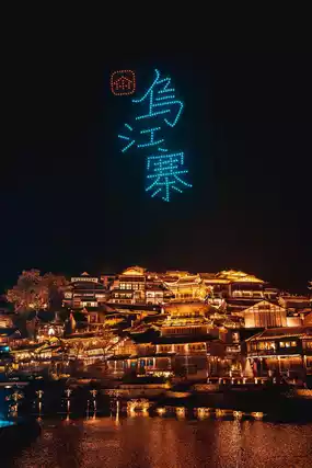 Chinese romantic phoenix flying, fire pot, water dance, drone show...