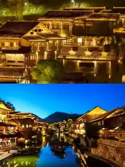 In Wujiang Village, you can stroll on the antique streets, admire traditional buildings and handicrafts. You can also take a boat to enjoy the beautiful scenery of Wujiang. At night, the lights in the village are on, which is even more unique.