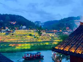 Walk along the riverside path with stilted houses nestled among terraced fields—spring blooms and autumn golden waves make every shot stunning! ️