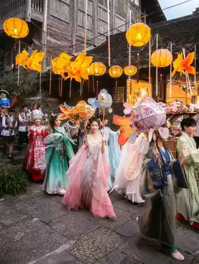 ✅ Street Parade: An immersive procession recreating traditional market culture, with Nuo gods leading the way. A parade of Lusheng players, Miao maidens, and more winds through the mountain streets, joined by the village's "Intangible Heritage Ambassadors" guiding visitor participation.