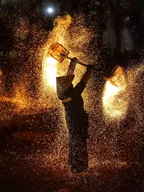 ✅ Fire Dance & Fire Pot Show: At Huilong Island Square, thrilling fire performances offer a stark contrast to daytime tranquility.