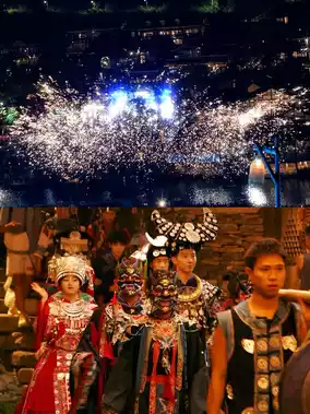 bamboo pole dances in the village, ethnic night parades, the evening drone show, and dancing around the bonfire with everyone~
